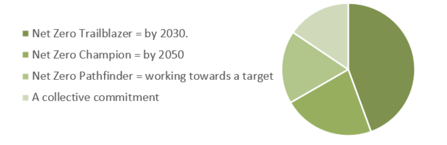 - 45 businesses have signed the Charter. 65% are trailblazers or champions with a have a net zero target by 2030 or 2050, and many others are making progress.