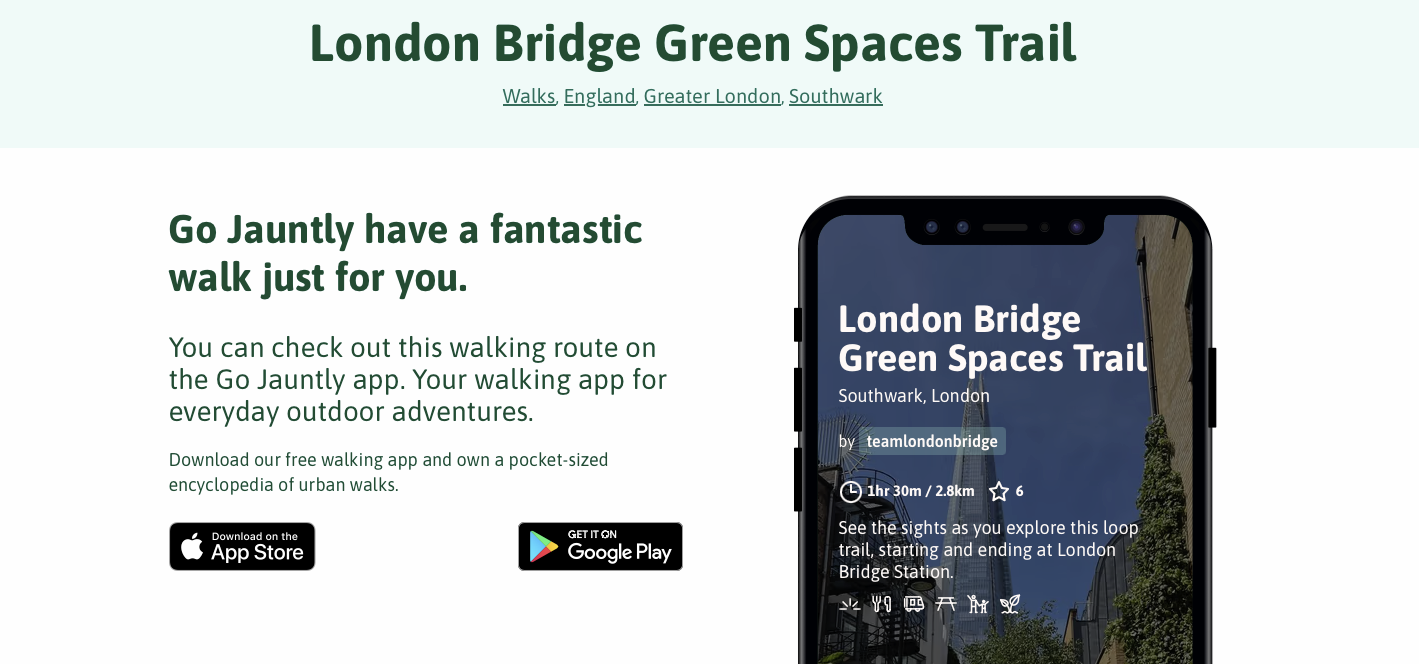 Team London Bridge has recently teamed up with the free walking app, Go Jauntily – the pocket sized encyclopaedia of urban walks – to make two of our favourite London Bridge walks even more accessible.