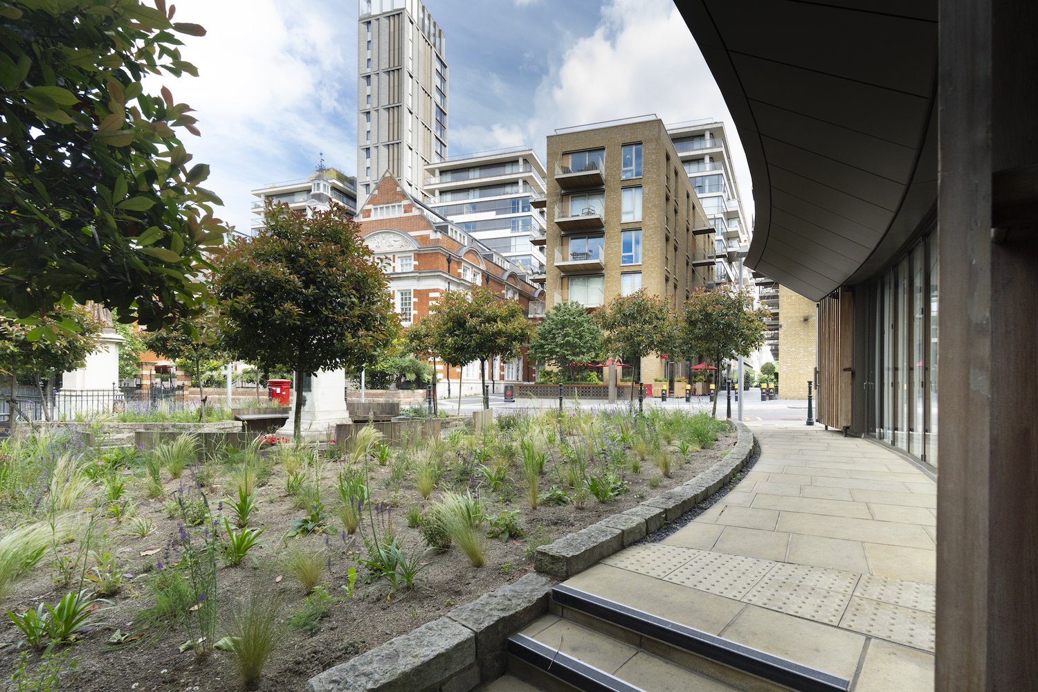 The transformation is now complete, with the site cleared by idverde and a new planting scheme from our go-to award-winning landscape designer Darryl Moore from Cityscapes, full of perennials, biodiversity and goodness. The new beds have proven to be a treat for the local insect and bird populations – with a swarm of bees taking a special interest!